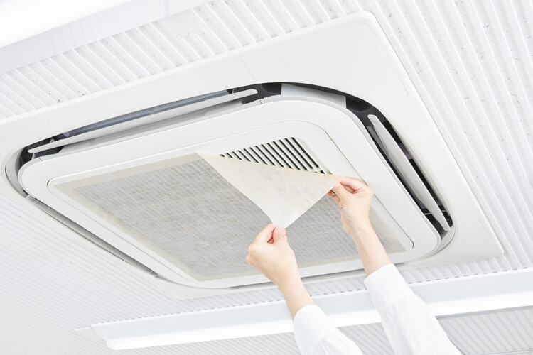 取り付け方は簡単。エアコンの吸気口にシールのように外側から貼るだけなので、どなたにも手軽にご利用いただけます。メーカー、型式問わず、ほとんどのエアコンで利用が可能で、汚れのサインを表す縞模様が、お使いの環境によって貼り替えのタイミングをお知らせします。