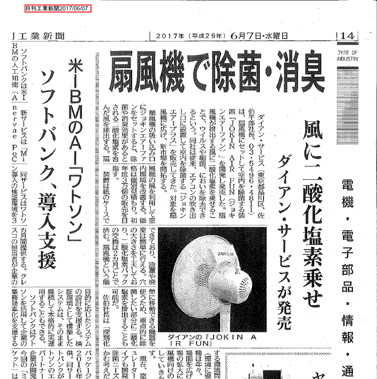 新商品『JOKIN AIR FAN』が日刊工業新聞に掲載されました