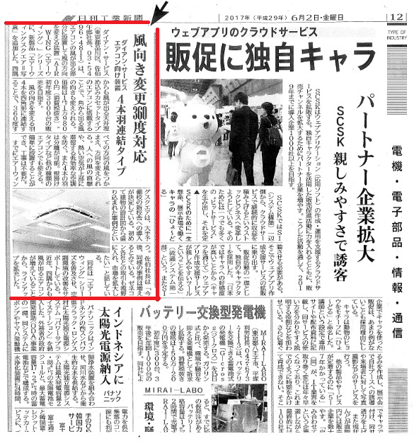 新商品『JOKIN AIR SQUARE』が日刊工業新聞に掲載されました