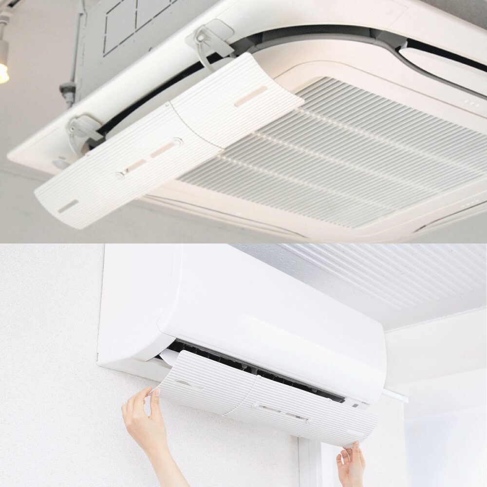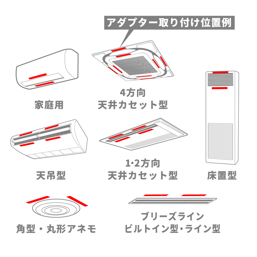9×4cmの差し込み口(アダプター)を2箇所貼るスペースがあればほぼ全てのエアコンに設置可能です。
