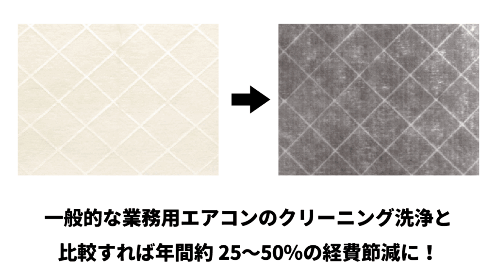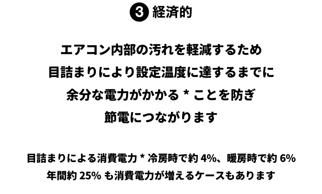 ゴミや汚れだけを効率的にキャッチ。空気の流れは遮りません。そのため、エアコンの負荷が大きく軽減され、省エネを実現しました。